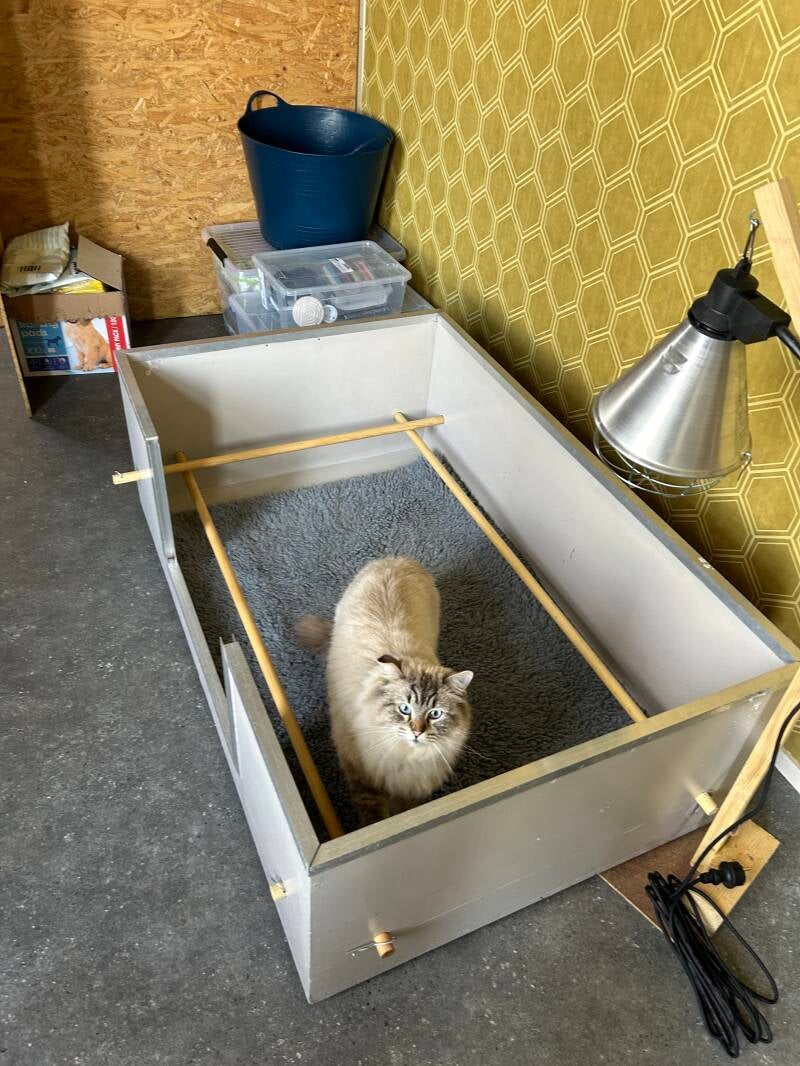 Genietend van het mooie weer, tijd voor de blog. We zitten nu op dag 45 van de dracht. Novi heeft duidelijk "last" van het gebeuren in haar buik. Het liggen en staan gaat ongemakkelijk en af en toe piept ze. Ze is de afgelopen week behoorlijk in omvang gegroeid en heeft wat extra stimulering nodig om in de beweging te blijven. Het liefst ligt ze de hele dag te rusten. Nog even en dan kunnen wij ook meegenieten, want dan zijn de pups voelbaar aan de buitenkant van de buik. Stapje voor stapje begint ook de kraamkamer vormt te krijgen.