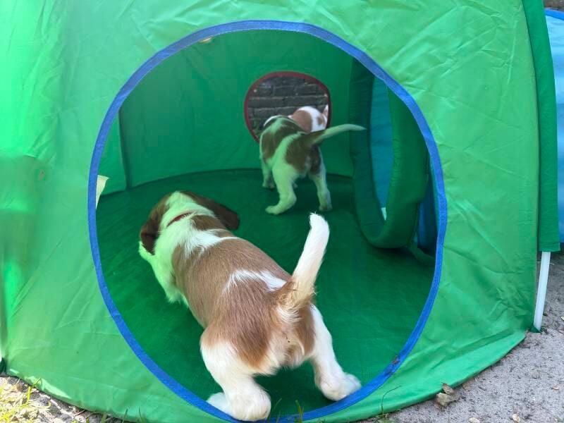 De pups zijn vandaag 5 weken oud. Na voor sommigen maanden te hebben gewacht, is het moment eindelijk daar. De eerste bezoeken zijn geweest voor de a.s. nieuwe eigenaren. Of het een reu of teefje wordt is bekend, maar welke het wordt? Dat blijft nog even gissen. Voor ons is het erg belangrijk dat het karakter wat de pup nu al laat zien, past bij de toekomstige nieuwe situatie. Daarnaast moet er ook een klik zijn. Een belangrijk moment dus voor zowel fokker als baas. Wanneer iemand op de wachtlijst komt is er al uitgebreide communicatie vooraf geweest. Past het ras bij wat wordt gezocht? Is er ervaring? Wat wordt verwacht van de hond en wat is de gezinssituatie? Tijdens het bezoek gaan we daarmee verder en kunnen we samen de pups nog verder observeren. Voor sommige pups is het heel duidelijk waar ze het beste passen, andere moeten even wat langer wachten. In de weken die nog komen wordt samen de beslissing gemaakt.