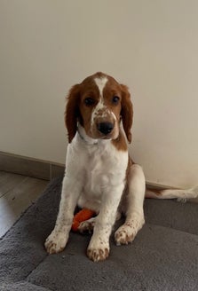 Oscar, onze oudere Welsh springer spaniël, heeft Achilles met open poten verwelkomd. Achilles heeft een bijzondere voorliefde voor Oscar's oren en staart, waar hij graag in bijt. Gelukkig ziet Oscar dit als speelse genegenheid en tolereert hij het met geduld. Oscar is een groot voorbeeld voor Achilles, en samen zijn ze al dikke vrienden. Het is prachtig om te zien hoe ze samen spelen en de wereld om hen heen verkennen.