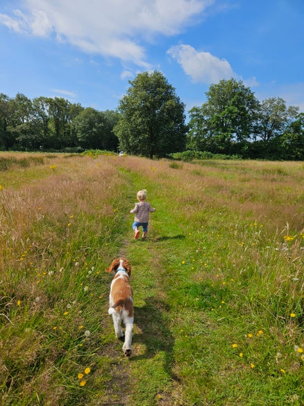 Wanneer je 's ochtends wakker wordt ben je een energie bom en oh zo blij om je baasjes weer te zien. Eerst was het even zoeken hoe we hier het beste mee om konden gaan, maar inmiddels hebben we aardig een ritme te pakken. In hoeverre dit lukt met een pup en een dreumes ;), maar we zijn tevreden met hoe het gaat en hoe je het doet bij ons in het gezin. Waar je in het begin met de wandelingen vooral tussen onze benen liep, loop je nu vrolijk mee de wereld aan het ontdekken. Wat een lieve, leergierige en nieuwsgierige hond. Natuurlijk horen daar ook de uitdaagmomentjes en bijtmomentjes bij, maar daar leren we elke dag weer van.